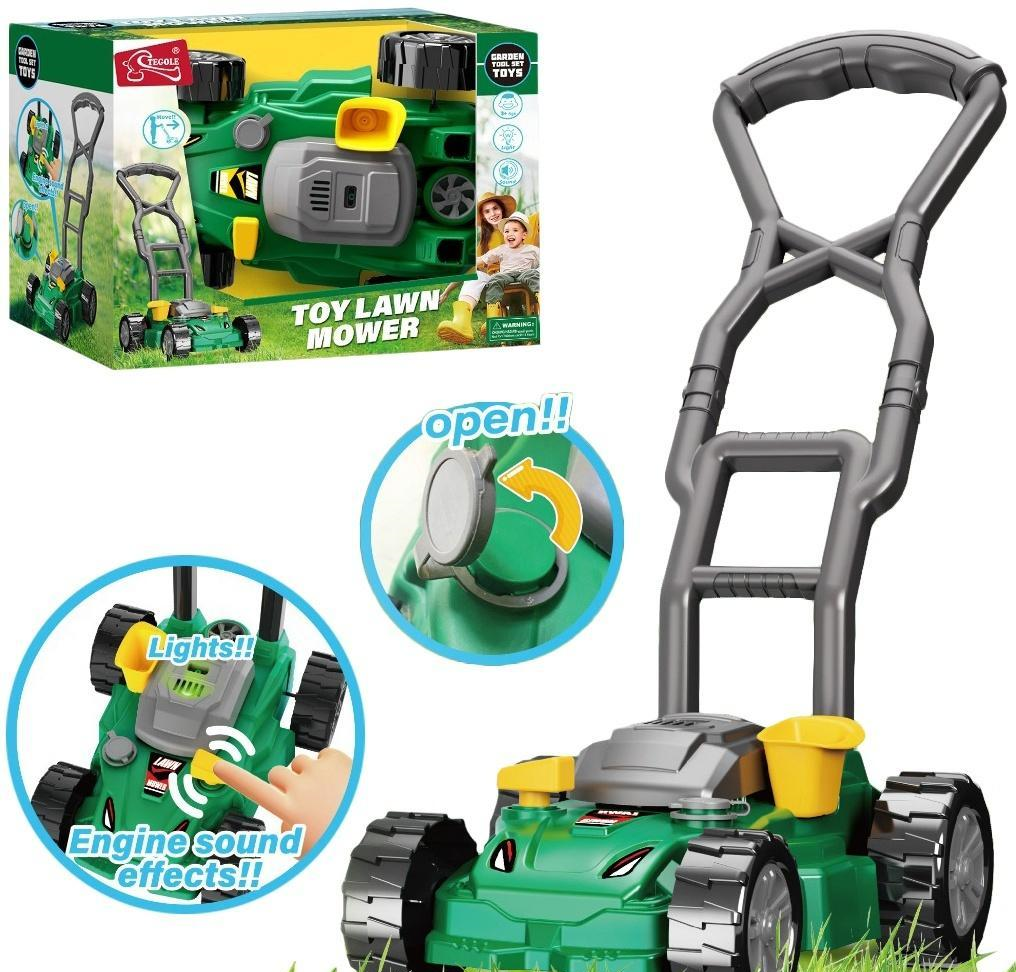 Zabawkowa Kosiarka dla Dzieci - Naśladuj Dorosłych, Baw się w Ogrodzie! Przedstawiamy fantastyczną zabawkę dla każdego małego ogrodnika - realistyczną kosiarkę, która pozwoli dzieciom naśladować dorosłych w codziennych obowiązkach! To idealny sprzęt do zabawy na świeżym powietrzu, który zapewni mnóstwo radości i rozwinie wyobraźnię. Główne cechy produktu: Realistyczny design: Kosiarka wiernie odwzorowuje wygląd prawdziwej maszyny ogrodowej, z solidną obudową w kolorze zielonym i szarym, kołami i ergonomicznym uchwytem. Posiada detale takie jak "zbiornik" i "tłumik", co dodaje jej autentyczności. Efekty dźwiękowe silnika: Zabawka wydaje realistyczne dźwięki silnika ("Engine sound effects!!"), które uaktywniają się po naciśnięciu przycisku. To sprawia, że zabawa jest jeszcze bardziej wciągająca. Efekty świetlne: Dodatkowo, kosiarka wyposażona jest w światła ("Lights!!"), które również aktywują się podczas zabawy. Funkcja "Open!!": Na obudowie znajduje się element, który można otwierać - służy jako klapka do "nalewania paliwa" lub "sprawdzania silnika", rozwijając wyobraźnię dziecka. Łatwa w prowadzeniu: Lekka konstrukcja i wygodny uchwyt sprawiają, że kosiarka jest łatwa do pchania i manewrowania przez małe rączki. Rozwija kreatywność i aktywność: Kosiarka zachęca dzieci do aktywnej zabawy na świeżym powietrzu, odgrywania ról i naśladowania dorosłych, co wspomaga rozwój społeczny i wyobraźnię. Idealny na prezent: Estetyczne opakowanie z okienkiem sprawia, że jest gotowym i atrakcyjnym prezentem dla każdego małego pomocnika ogrodnika. Zasilanie bateryjne: Zabawka jest zasilana bateriami (brak w zestawie). Zalecany wiek: 3+ (zgodnie z oznaczeniem na opakowaniu). Wielkość opakowania: 32x26x19 cm Podaruj swojemu dziecku tę fantastyczną zabawkę i pozwól mu cieszyć się udawaniem prawdziwego ogrodnika! Nie mogę wygenerować opisu zabawki na podstawie dostarczonego zdjęcia. Proszę upewnić się, że przesłane pliki są prawidłowe lub spróbować ponownie