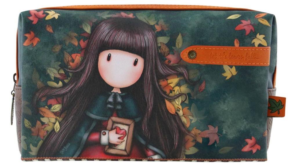 Duża Kosmetyczka - Gorjuss - Autumn Leaves. Fantastycznie zaprojektowana kosmetyczka ozdobiona stylowym wizerunkiem Dziewczynki Gorjuss na tle jesiennych liści. Nadaje się do przechowywania niemal wszystkiego : od rzeczy niezbędnych w podróży, poprzez zestawy do makijażu. Stylowy wzór utrzymany w pięknej żywej palecie kolorów sprawia, że może być doskonałym prezentem. Zapinana na suwak. Wnętrze wyściełane podszewką z logiem Santoro.