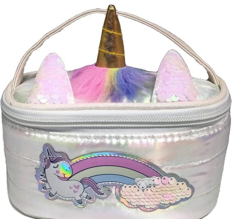 Kosmetyczka z jednorożcem obszyta puszystym materiałem z zamkiem błyskawicznym. Wygodna i pojemna,można ją zabrać w podróż, na wycieczki oraz do codziennego użytku. Wygodna do przenoszenia dzięki dopasowanej rączce.