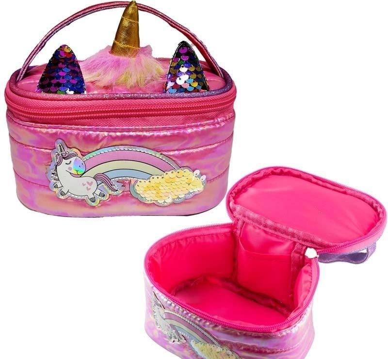 Kosmetyczka z jednorożcem obszyta puszystym materiałem z zamkiem błyskawicznym. Wygodna i pojemna,można ją zabrać w podróż, na wycieczki oraz do codziennego użytku. Wygodna do przenoszenia dzięki dopasowanej rączce.