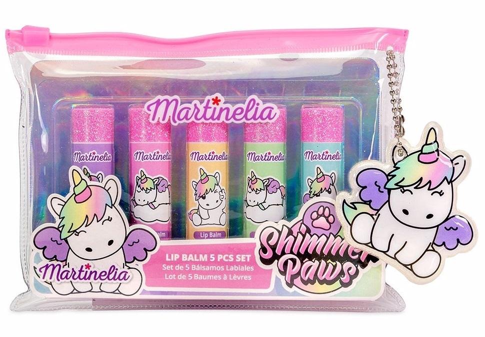 Kosmetyczka z balsamami. Zestaw zawiera: 5 balsamów do ust dla dzieci i breloczek.