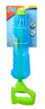 Pistolet wodny w niebiesko zielonej kolorystyce. Wykonany z materiału półprzejrzystego, pozwalający na widoczność poziomu wody w pistolecie. Pojemność zbiornika: 225 ml. Odległość strzelania: 12 m. Rozmiar: 45 cm.