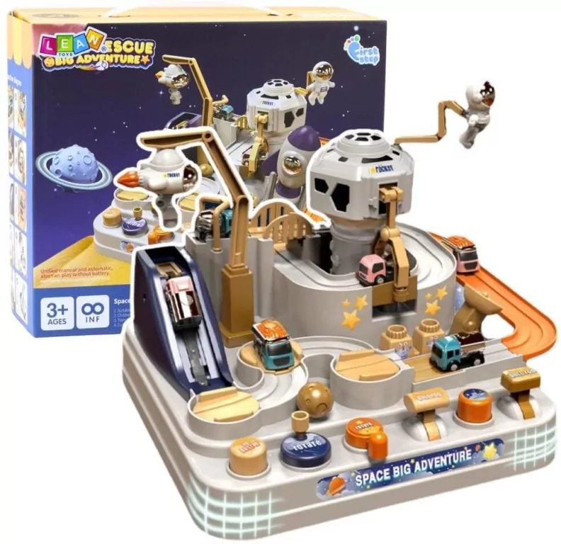 KOSMICZNY TOR INTERAKTYWNY Oto niesamowity, wielofunkcyjny kosmiczny tor interaktywny, który nie tylko zachwyca swoją konstrukcją i jakością wykonania, ale także aktywnie wspiera rozwój dziecka. To prawdziwa kosmiczna baza pełna przygód, w której mali odkrywcy znajdą aż 10 różnych mechanicznych aktywności - wszystkie obsługiwane ręcznie, bez potrzeby użycia baterii. Wśród funkcji znajdują się m.in. wyrzutnie rakiet, ruchome dźwigi, zjeżdżalnie, windy, tunele, zapadnie, obrotowe platformy i kolorowe przyciski, które uruchamiają kolejne elementy układu. Zabawka działa na zasadzie manualnej interakcji - każde działanie dziecka wywołuje efekt mechaniczny, który uczy związku przyczynowo-skutkowego. Dzięki takiej formule tor doskonale wpisuje się w założenia edukacji Montessori - rozwija motorykę małą, zdolności manualne, koordynację oko-ręka, a także wyobraźnię przestrzenną i logiczne myślenie. Każdy z elementów został zaprojektowany tak, aby był intuicyjny w obsłudze i bezpieczny dla dziecka. W zestawie znajdują się 3 kolorowe pojazdy oraz figurka astronauty, które umożliwiają dzieciom tworzenie własnych scenariuszy i odgrywanie ról w świecie kosmicznych misji. Całość została zapakowana w estetyczne, kolorowe pudełko, dzięki czemu idealnie sprawdzi się jako prezent na każdą okazję - urodziny, święta czy nagroda za dobre zachowanie. Ten tor to nie tylko zabawa - to pełna emocji przygoda w przestrzeni kosmicznej, którą dzieci pokochają od pierwszego kontaktu. SPECYFIKACJA: Rodzaj produktu: interaktywny tor mechaniczny Motyw: kosmos / baza kosmiczna Liczba funkcji: 10 interaktywnych elementów Zasilanie: brak - mechaniczna obsługa Wymiary toru: 25 25 18 cm Wymiary opakowania: 31 24,5 11 cm Materiał: trwały ABS ZAWARTOŚĆ ZESTAWU: 1 x baza kosmiczna - tor 3 x kolorowe pojazdy 1 x figurka astronauty Kolorowe pudełko prezentowe