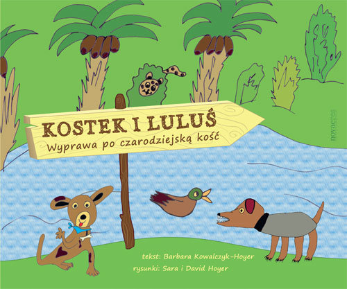 Dwa szczeniaki Luluś z Kostkiem Poszukują złotej kości, Którą ukradł Smok Straszliwiec Znany z wielkiej złośliwości. W swej wędrówce dzielne psiaki Przemierzyły świata kawał. Czasem szczęście im sprzyjało, Czasem pech im w skórę dawał. Wrocław, Londyn, pół Afryki, Straszne lwy i mądre słonie, Krokodyle, maskonury, Raz na statku, raz w balonie. Jak skończyła się ich podróż? Czy wędrują wciąż po świecie? Czy znaleźli złego smoka? Tego z książki się dowiecie! Autorzy rysunków: Sara i David Hoyer są rodzeństwem. Urodzili się w Warszawie, a teraz mieszkają w Berlinie, gdzie chodzą do szkoły podstawowej. Kochają naturę i dużo czasu spędzają na wsi, głównie na wyspie Wolin. W czasie wolnym Sara chętnie uczy się języków obcych, gra na gitarze, czyta powieści i oczywiście bardzo dużo maluje. David najchętniej przegląda książki o zwierzętach, a potem te zwierzęta rysuje i egzaminuje całą rodzinę ze znajomości gatunków. Kostka i Lulusia wymyślili przed dwoma laty w czasie letnich wakacji. Od tej pory często zaganiali mamę do pisania tekstu, a potem pracowicie ilustrowali każdą nową przygodę. Autorka tekstu: Barbara Kowalczyk-Hoyer jest mamą Sary i Davida. Z pochodzenia rybniczanka, obecnie mieszka w Berlinie i, na ile czas pozwala, na wyspie Wolin. Najchętniej pisze, czyta i podróżuje. W styczniu 2013 roku ukazała się jej pierwsza powieść Anielska pomyłka.