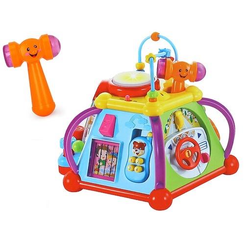 Zabawka posiada ponad 15 zabaw edukacyjnych, które stymulują ciekawość dziecka i rozwijają jego umysł i inteligencję. Poza tym zabawka może przyciągnąć dziecko na długi czas dzięki tak wielu opcjom zabawy.