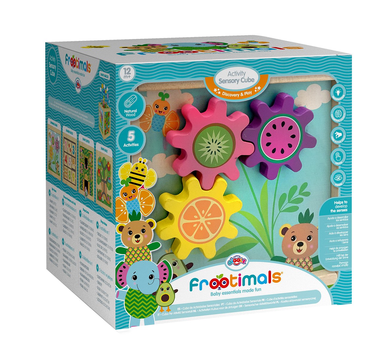 - Sorter kształtów: Figurki Frootimals i kolorowe kształty, aby stymulować zmysły i umiejętności motoryczne dziecka.
