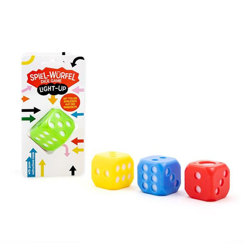 Ta podświetlana kostka gwarantuje wyjątkową zabawę! Rzuć kostką, a zaświeci się ona migającym kolorowym światłem - świetna zabawa dla młodszych i starszych! Wiele dobrych pomysłów na grę można znaleźć na wewnętrznej stronie opakowania. Dostępna w 4 kolorach: czerwonym, niebieskim, zielonym, żółtym; rozmiar kostki: ok. 4,0 x 4,0 x 4,0 cm, materiał: guma termoplastyczna, dołączone baterie: 3 x LR41 (niewymienne)