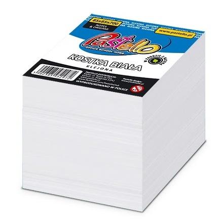 Kostka klejona biała, wymiar 85x85x70mm. Wykorzystywana do notatek i zapisków. Może służyć jako samodzielny bloczek lub wkład do pojemnika. Doskonały do biura, szkoły lub domu.