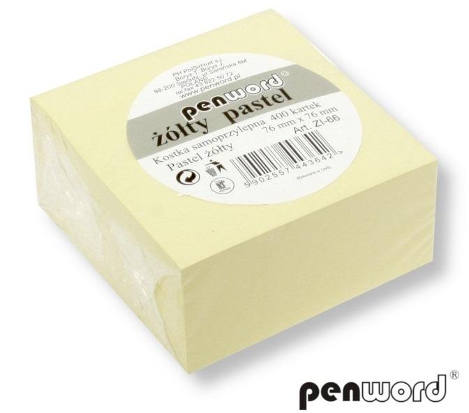 Kostka samoprzylepna pastel żółty 76x76mm 400 kartek.