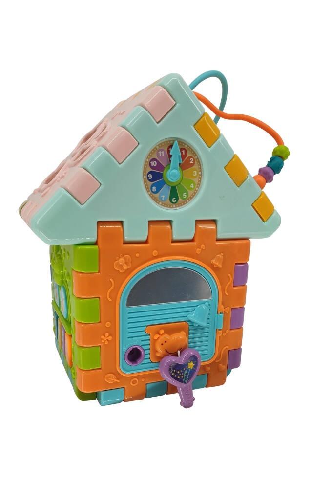 Kostka wielofunkcyjna w kształcie domku dla malucha z funkcją światła i dzwięku. Produkt potrzebuje baterii 3 x ""AAA"" - w zestawie brak. Zabawka przeznaczona dla dzieci powyżej 18 miesięcy.