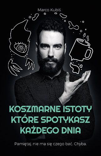 Koszmarne istoty. Myślałeś, że mieszkają tylko w książkach fantasy i horrorach? Nie mogłeś się bardziej mylić – mieszkają wśród nas, czasem w stercie ubrań zostawionych na krześle, które wykorzystujesz tylko do tego celu, innym razem w nocnej latarni, która mruga, gdy koło niej przechodzisz. Poznaj Zakapturzone Istoty, Niezręczną Ciszę, ludzi z kryształu, stada Pożeraczy Snów i wiele innych okropności. A może szukasz Sensu Życia? Też go tutaj znajdziesz! Ale spokojnie, to nie jest książka o tym, jak żyć. Raczej o tym, przed czym uciekać, a przed czym nie. Myślę, że ta wiedza przyda się o wiele bardziej. PAMIĘTAJ, NIE MA SIĘ CZEGO BAĆ. CHYBA. Marco Kubiś – bardzo popularny youtuber, zaklinacz internetu i jego potworów. Od lat hipnotyzuje widzów swoimi filmami. Zgromadził już 300 tysięcy subskrypcji i ponad 25 milionów wyświetleń, ale jak sam twierdzi, to tylko część jego widowni. YouTube bardzo źle zlicza widzów z innych wymiarów.