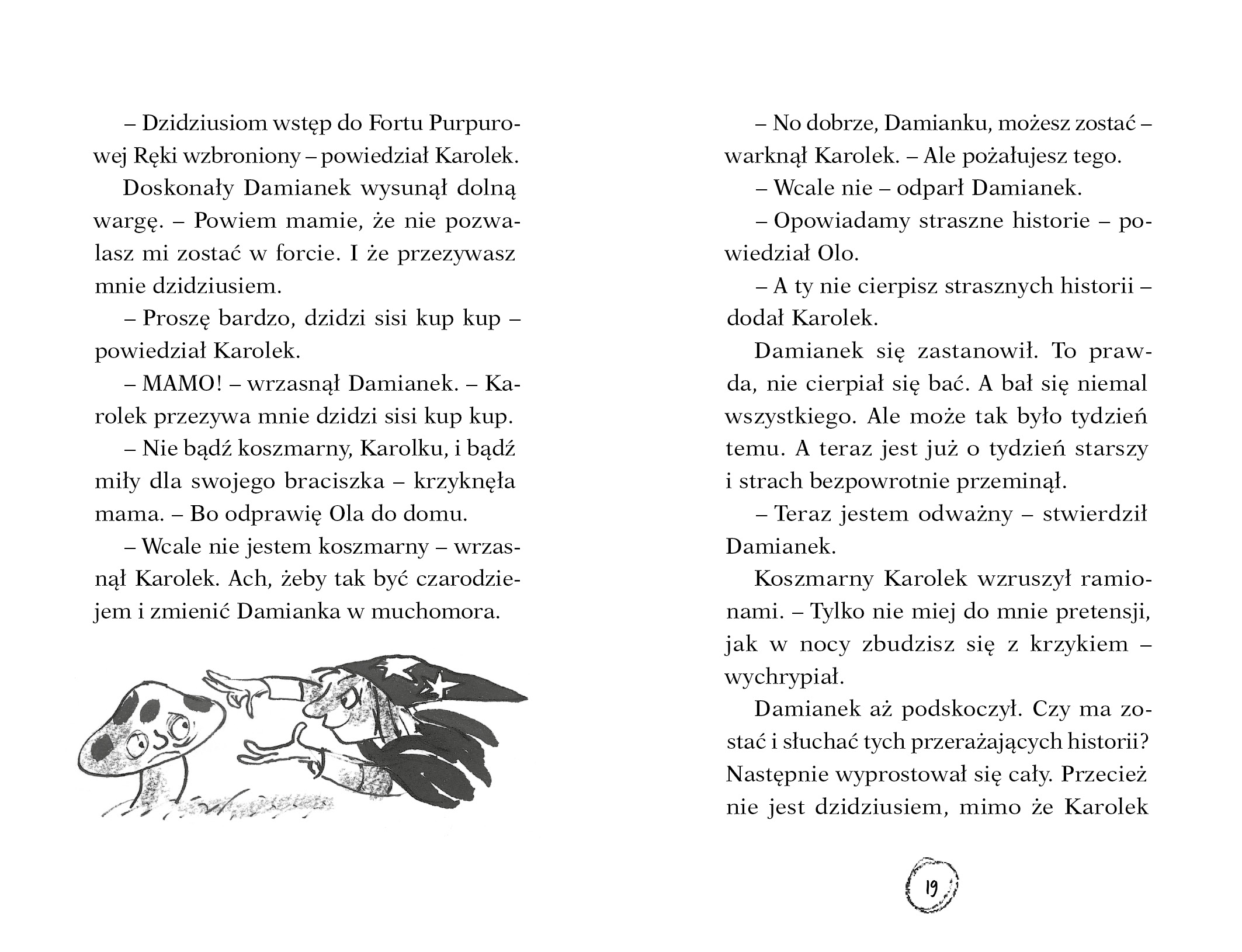 Cóż może być lepsze niż nocowanie u Ola i wzajemne napędzanie sobie strachu? Mrożące krew w żyłach opowieści o mumiozombie i potwornych zmorach! Tylko jak tu się pozbyć tej larwowatej larwy natrętnego Damianka, który wszystkiego się boi i potrafi zepsuć najlepszą zabawę?