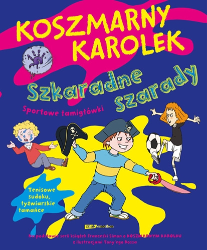 Trzy kolorowe zeszyty zawierają rozrywkowe łamigłówki zainspirowane treścią najlepszych opowiadań o Koszmarnym Karolku. Mnóstwo karkołomnych atrakcji do skreślania, wpisywania i kolorowania, w tym podstępne palindromy, wstrętne wyrazy i cała lista przezwisk Damianka. Rozrywka i ćwiczenia umysłowe w jednym.