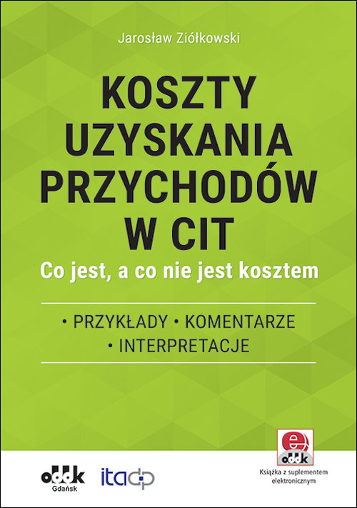 Podatnicy rozliczający podatek dochodowy od osób prawnych mogą pomniejszyć podstawę opodatkowania o koszty uzyskania przychodów (KUP). Prawidłowe zaliczenie poniesionych wydatków do KUP jest bardzo ważnym, a zarazem budzącym wiele wątpliwości aspektem rozliczeń podatku CIT. W publikacji omówiono ogólne zagadnienia dotyczące kosztów uzyskania przychodów, m.in.: *definicję kosztów, *zasady ich dokumentowania, *moment rozliczenia KUP, *zasady rozliczania kosztów poniesionych w obcych walutach. Ponadto przedstawiono szczegółowe zagadnienia dotyczące zaliczenia lub wyłączenia z KUP wydatków związanych m.in. z: *nabyciem lub wytworzeniem środków trwałych (w tym również amortyzacja), *zakupem samochodu osobowego, *przekazaniem darowizny, *wynagrodzeniami pracowniczymi (w tym koszty dotyczące pracowniczych planów kapitałowych), *kosztami zadłużenia (w tym omówienie odsetek hipotetycznych), *nabyciem usług niematerialnych od podmiotów powiązanych, *funkcjonowaniem organów spółek, *regulowaniem zobowiązań podatkowych, *zapłatą odszkodowań i kar umownych, *działalnością badawczo-rozwojową, *kosztami reprezentacji, *obowiązkiem zapłaty na rachunki widniejące na tzw. białej liście podatników VAT oraz z zastosowaniem mechanizmu podzielonej płatności. Publikacja uwzględnia stan prawny na dzień 1 lipca 2021 r., w tym wynikający z ustawy z dnia 28 listopada 2020 r. o zmianie ustawy o podatku dochodowym od osób fizycznych, ustawy o podatku dochodowym od osób prawnych, ustawy o zryczałtowanym podatku dochodowym od niektórych przychodów osiąganych przez osoby fizyczne oraz niektórych innych ustaw (Dz.U. z 2020 r. poz. 2123) oraz ustawy z dnia 19 lipca 2019 r. o zmianie ustawy – Kodeks spółek handlowych oraz niektórych innych ustaw (Dz.U. z 2019 r. poz. 1655 ze zm.), a także kwestie związane z rozliczeniami podatkowymi dotyczącymi COVID-19. Całość wzbogacono licznymi przykładami, orzecznictwem sądowym oraz stanowiskami organów podatkowych. Suplement elektroniczny do książki zawiera wyciąg z ustawy o CIT – rozdział 3 „Koszty uzyskania przychodów”. Plik suplementu do pobrania przez Internet – instrukcja w książce. Zainstalowanie suplementu wymaga systemu operacyjnego Windows.