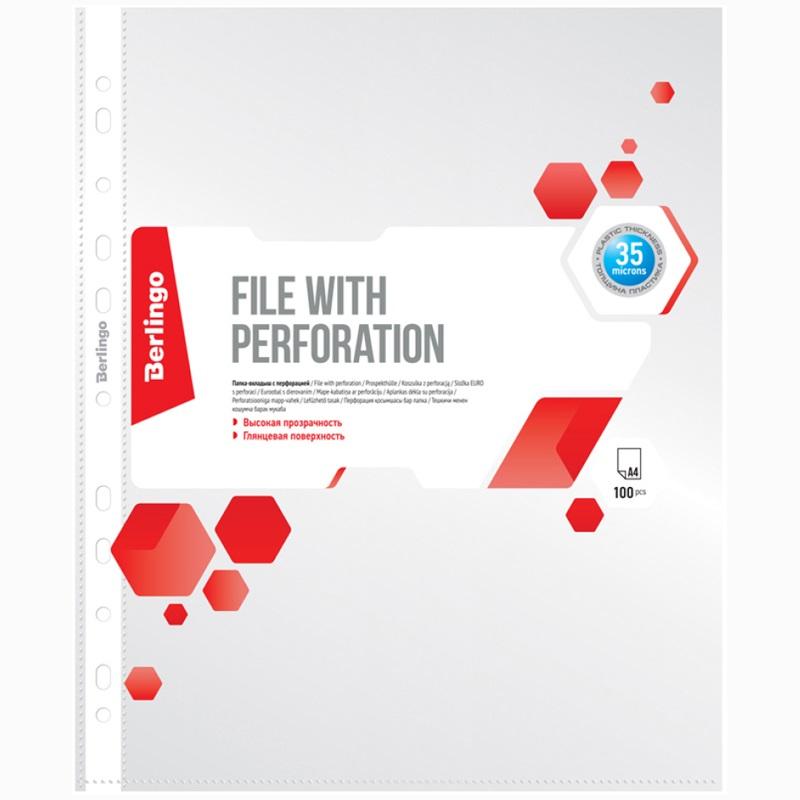 Koszulka A-4 typu krystaliczna, przezroczysta. Materiał folia polipropylen PP, rozmiar 305 x 235 mm, służy do przechowywania dokumentów A4 w segregatorach i teczkach oraz do ochrony kartek przed wpływami zewnętrznymi. Orientacja pionowa, grubość folii 35 mikronów, pojemność do 50 arkuszy papieru 80g/m2. Opakowanie zawiera 100 sztuk koszulek. Powierzchnia jest antyelektrostatyczna. Logo Berlingo oznakowane jest na wzmocnionym pasku bocznym z perforacją 11 otworów. Koszulka pasuje do wszystkich rodzajów segregatorów.