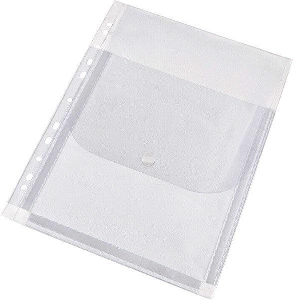 ? wykonana z folii PVC ?wysoka przezroczystość i wytrzymałość ?pojemność: książki, katalogi, do 250 kartek ? europerforacja do wpinania w segregator ?posiada klapkę zabezpieczającą materiały przed wysunięciem ? koszulka wykonana z polipropylenu posiada dodatkowo praktyczne zapięcie