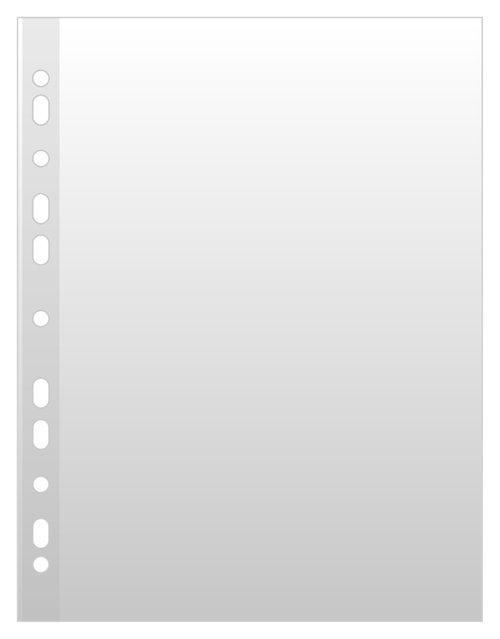 wykonane z miękkiej, gładkiej folii polipropylenowej o grubości 50µm, wzmocniony brzeg posiada właściwości antyrefleksyjne krystaliczne, transparentne otwarte na górze antyelektrostatyczne odpowiednie do dokumentów w formacie A4 ilość dziurek do wpięcia: 11 rozmiar: 230x305mm 100 sztuk w j.s. kolor transparentny