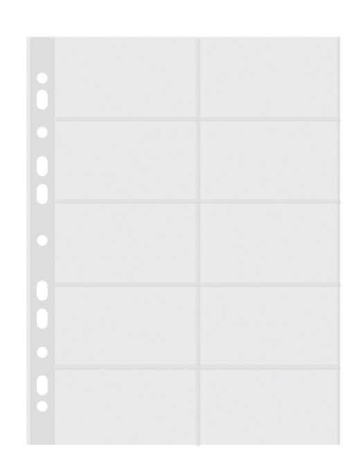 wykonane z gładkiej ekologicznej folii polipropylenowej o grubości 50μm posiada Zielony Punkt (Der Grüne Punkt) - udział w systemie recyklingu i odzysku odpadów wynikający z przepisów prawa polskiego i UE specjalnie wzmocniony brzeg antystatyczne krystaliczne, transparentne przeznaczone na 10 jednostronnie lub 20 dwustronnie umieszczonych kart wizytowych kieszonki mieszczą wizytówki o rozmiarach do 95x60mm ilość dziurek do wpięcia: 11 rozmiar: 235x305mm kolor transparentny