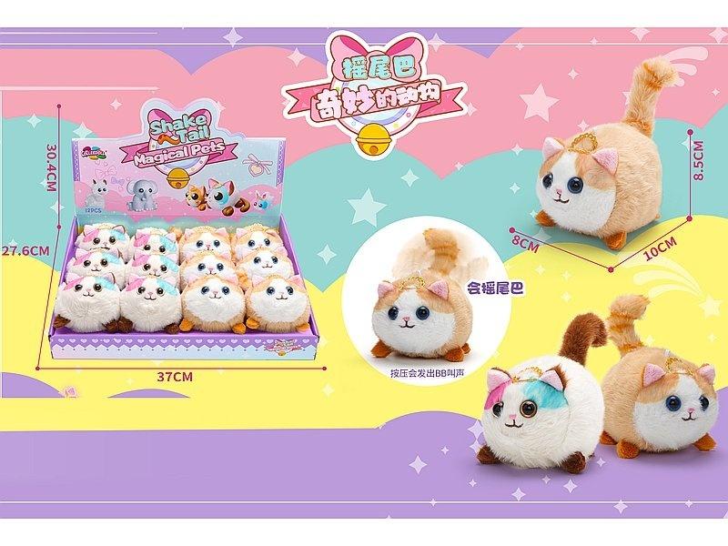Kot pluszowy kręcący ogonem, 10x8,5x8cm, display 12szt.