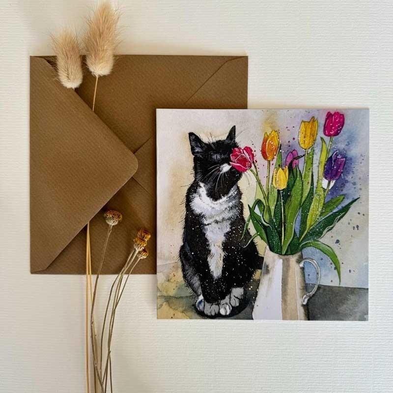 Karnet bez tekstu wewnątrz, w zestawie z brązową kraftową kopertą. Wyprodukowany w Wielkiej Brytanii.