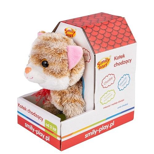 Kotek chodzący jest mięciutki i idealny do przytulania, a materiał wysokiej jakości, z którego został wykonany jest miły i delikatny w dotyku.