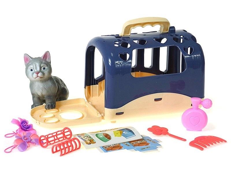 kotek z klatką do przenoszenia, z akcesoriami; 29,5x18x13,5cm, Box