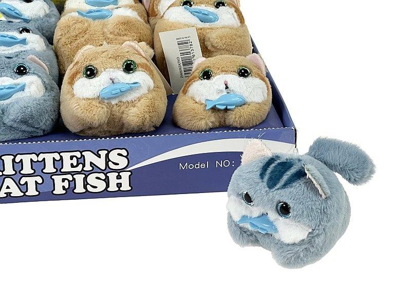 Kotek z rybą machający ogonem pluszowy 13cm MIX