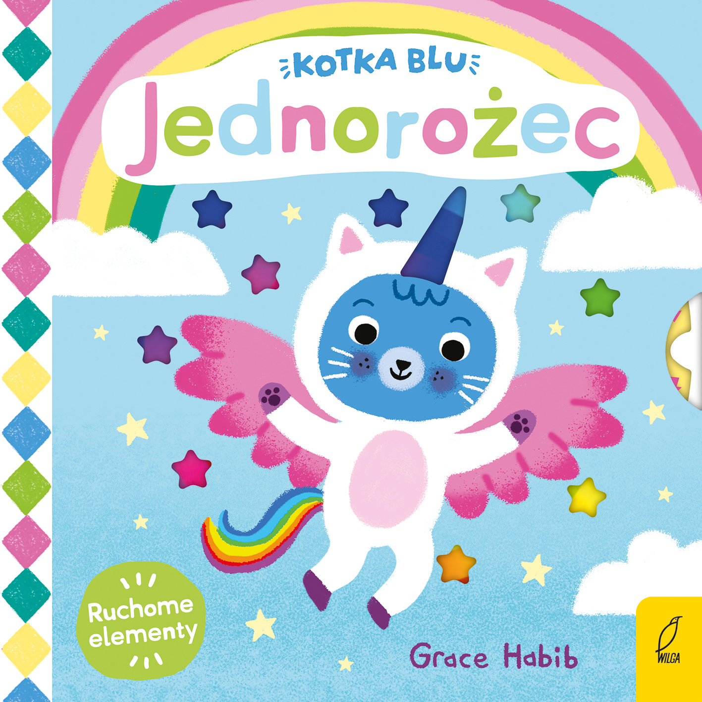 Seria o uroczej kotce Blu, która może być, kim tylko chce! W każdej książeczce kotka wybiera, kim chce dzisiaj być. W każdą rolę wciela się z pasją, radością i zaangażowaniem. Jednak to, co najważniejsze, to pozostanie życzliwym, miłym i pomocnym – wówczas wszystko zawsze się udaje! Książeczki zawierają ruchome elementy na każdej stronie, co gwarantuje maluchowi nie tylko dobrą zabawę, ale także wsparcie rozwoju poznawczego i motorycznego. Tym razem kotka Blu jest jednorożcem i ratuje uwięzionego księcia w magicznym zamku w chmurach. Poznaj nowe opowiadanie o kotce Blu, śledź jej przygody, przesuwaj paluszkami ruchome elementy i baw się wspaniale!