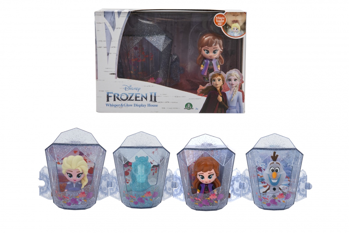 Szepnij i rozświetl! Laleczka nawiązująca do fabuły z filmu Kraina Lodu 2 z systemem RGB LED. Rozświetla się pod wpływem powietrza wdmuchiwanego do otworu w górnej części laleczki. Po ponownym wdmuchnięciu powietrza kolor światła się zmienia. Łącznie występuje 6 różnych iluminacji świetlnych. Opakowanie zawiera laleczkę o wysokości 7 cm (załączone baterie) a także pojedynczą lodową komnatę. 4 komnaty łączą się ze sobą i mogą stworzyć lodowy zamek.