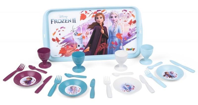 Zestaw z tacą Frozen 2 310502. Śliczny zestaw w dziewczęcych barwach, zawiera elegancką tacę, która umożliwi łatwy transport akcesoriów w dowolnym miejscu oraz 4 talerzyki, ozdobione motywem bohaterów z bajki ""Kraina Lodu 2"", 4 widelce, 4 noże, 4 łyżeczki i 4 kielichy.