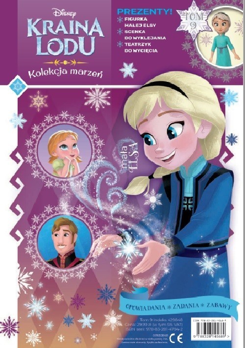 W każdym tomie Kolekcji Marzeń znajdziesz prześliczną ręcznie malowaną figurkę, kolejną część filmowej historii , a także nieznane przygody Anny, Elsy i ich przyjaciół. Do tego czeka Cię mnóstwo zabawy – wycinanki, naklejki, zadania, ciekawostki oraz scenki do wyklejania, dzięki którym zwiedzisz wspaniałe komnaty zamku Arendelle! Kolekcja składa się z 20 tomów, nowy tom w sprzedaży co 2 tygodnie