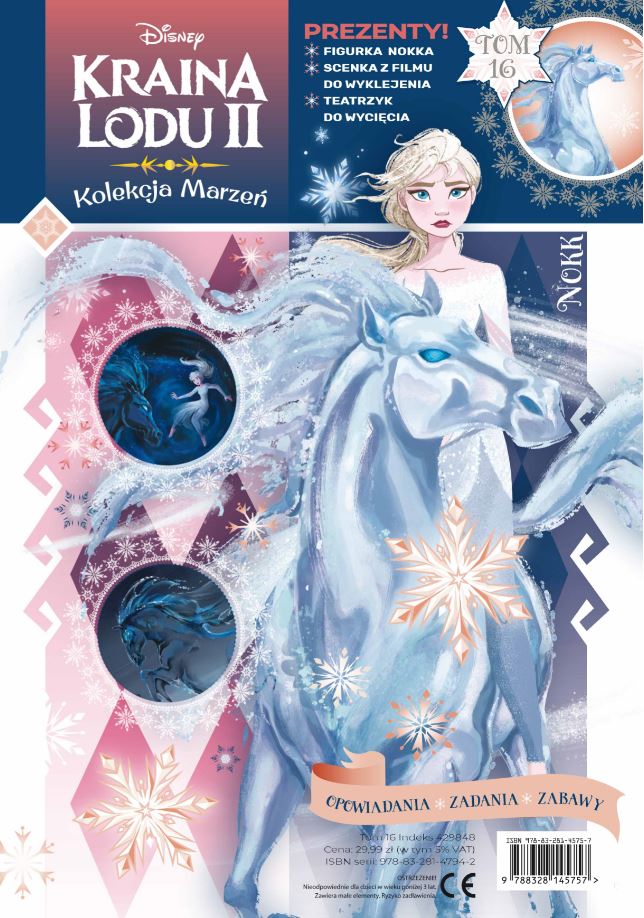 W każdym tomie Kolekcji Marzeń znajdziesz prześliczną ręcznie malowaną figurkę, kolejną część filmowej historii , a także nieznane przygody Anny, Elsy i ich przyjaciół. Do tego czeka Cię mnóstwo zabawy – wycinanki, naklejki, zadania, ciekawostki oraz scenki do wyklejania, dzięki którym zwiedzisz wspaniałe komnaty zamku Arendelle! Kolekcja składa się z 20 tomów, nowy tom w sprzedaży co 2 tygodnie