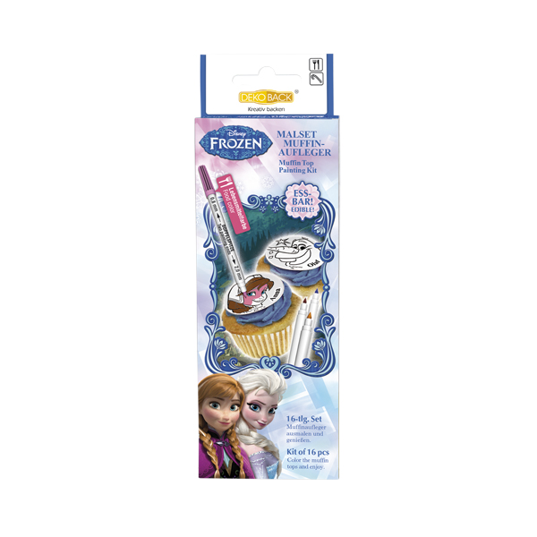 Zestaw do malowania opłatków na muffiny Kraina Lodu, to zestaw 16-częściowy, składający się z 12-u cukrowych opłatków na muffiny oraz 4-ech pisaków spożywczych z jadalnymi farbami spożywczymi, z podwójną końcówką.Pomaluj, udkoruj i smakuj!