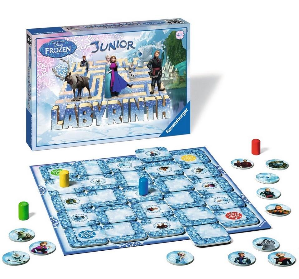 Kto znajdzie w labiryncie z lodu i śniegu drogę do dzielnych sióstr, Anny i Elsy, albo do zabawnego bałwanka Olafa? Jeżeli będziesz sprytnie i przewidująco przesuwał karty w labiryncie, to tam, gdzie wcześniej stały mury, powstaną nagle nowe drogi, a Ty będziesz mógł dotrzeć do wszystkich bohaterów z filmu Kraina Lodu. Zawartość: plansza do gry 17 kwadratowych kart z drogami 12 okrągłych żetonów 4 figurki. Liczba graczy 2-4 Wiek 4-8 lat