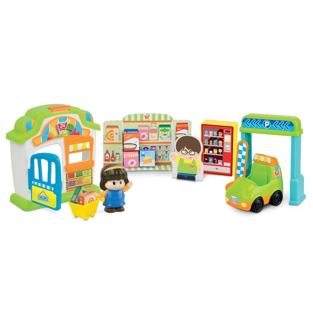 Sklep Smily Play to zestaw do zabawy dla najmłodszych z kolekcji Kraina Zabawy. Sklep pomaga małym dzieciom rozwijać wyobraźnię, umiejętności społeczne i wcielanie się w nowe role. Zestaw zawiera: sklep z otwieranymi drzwiami figurkę dziewczynki wózek z zakupami bramę auto regał z artykułami spożywczymi lodówkę sprzedawcę Cechy zabawki: kształtuje zdolności motoryczne dziecka stymuluje zmysły rozwija wyobraźnię ćwiczy pamięć i koncentrację świeci gra melodie wydaje śmieszne dźwięki