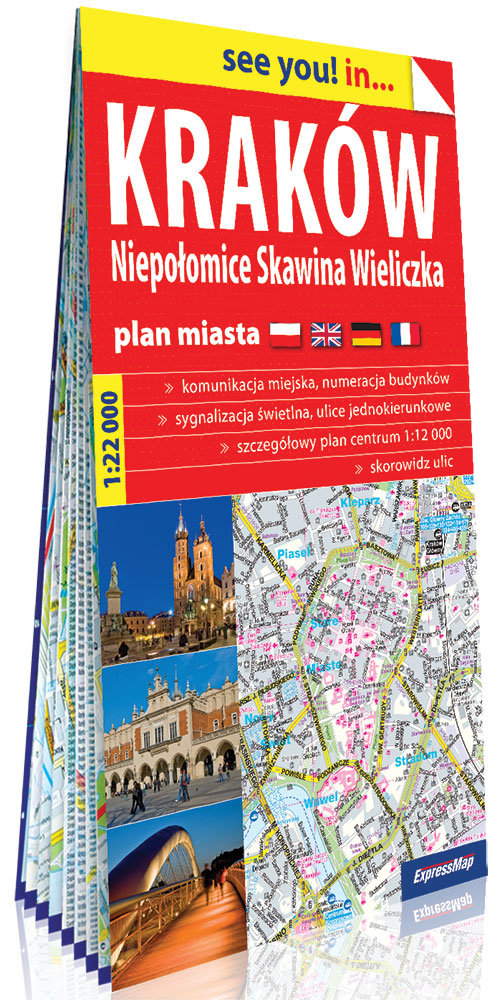 Kraków, Niepołomice, Skawina, Wieliczka Dawna siedziba królów na Wawelu, socrealistyczna Nowa Huta, klimatyczne knajpki na Kazimierzu, a może zabytkowa kopalnia soli w pobliskiej Wieliczce? Papierowy plan Krakowa, Niepołomic, Skawiny i Wieliczki pomoże odnaleźć atrakcje zarówno samego grodu Kraka, jak i jego okolic. Na mapie m.in.: • Kraków, Niepołomice, Skawina i Wieliczka w pełnych granicach administracyjnych, • szczegółowy rysunek zabudowy wraz z numeracją budynków wzdłuż ulic i na osiedlach, • linie autobusowe i tramwajowe wraz z nazwami przystanków, • sygnalizacja świetlna, ulice jednokierunkowe, parkingi, • bogata treść turystyczna, m.in.: zabytki, muzea, hotele i inne istotne obiekty, • budynki użyteczności publicznej, centra handlowe, • szczegółowy plan Starego Miasta i Kazimierza w skali 1:12 000 (1 cm – 120 m), • mapa samochodowa okolic Krakowa, • schemat nocnych linii autobusowych, • skorowidz ulic Krakowa, Niepołomic, Skawiny i Wieliczki.