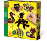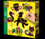 Zabawa jest bardzo prosta. Drewnianym dłutkiem odkrywasz tęczowe wzory i tworzych kolorowe zwierzątka. Dzięki dodatkom możesz zrobić im kolorowe ogonki, nóżki, wstążeczki.
