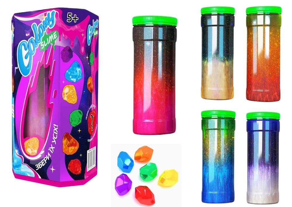 Zestaw Kreatywny Glutek Slime Galaktyka Kolorowy slime to coś co z pewnością zachwyci nie tylko najmłodszych. Składający się z różnych kolorów slime ma motyw galaktyki . Zabawka rozwija zdolności motoryczne oraz skutecznie wzmacnia siłę dłoni i palców. Slime oprócz pięknych kolorów posiada również przyjemny zapach oraz nie brudzi rąk. Zestaw wykonany jest z atestowanych i bezpiecznych materiałów. Zabawka dostosowana jest dla dzieci powyżej 3. roku życia, posiada certyfikat CE. Slime występuje w kilku kolorach, produkt podczas wysyłki wybierany jest losowo. Wymiary opakowania: 15 cm x 9 cm x 7 cm Waga: 1 kg Produkt jest zapakowany w pudełko. Zestaw wykonany jest z atestowanych i bezpiecznych materiałów. Zestaw dostosowany jest do dzieci powyżej 5. roku życia, posiada certyfikat CE