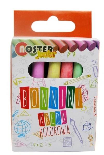 Wysokiej jakości kolorowa kreda firmy Noster. Jedno opakowanie zawiera 12 sztuk kredy w 6 różnych kolorach.