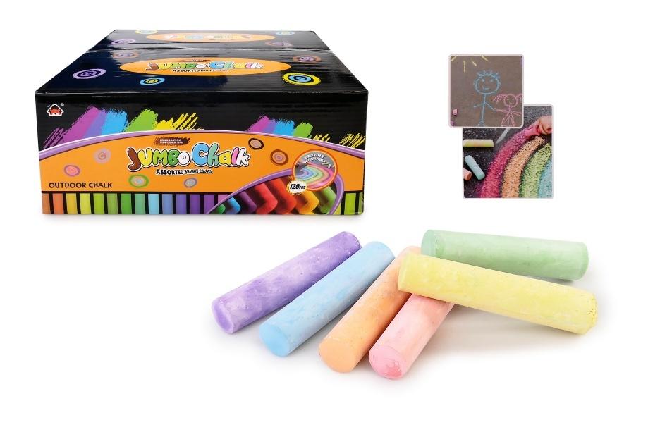 W zestawie: 120 sztuk kredy chodnikowej w 6 kolorach, długość 10,5 cm, średnica 2,5 cm, wym. opakowania: 28,5 x 11,5 x 26 cm, 3+