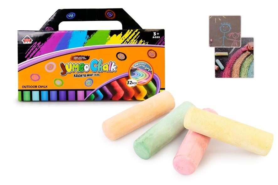 W zestawie: 32 kredy chodnikowe w 6 kolorach, długość 10,5 cm, średnica 2,5 cm, wym. opakowania: 19 x 9,5 x 10 cm, 3+