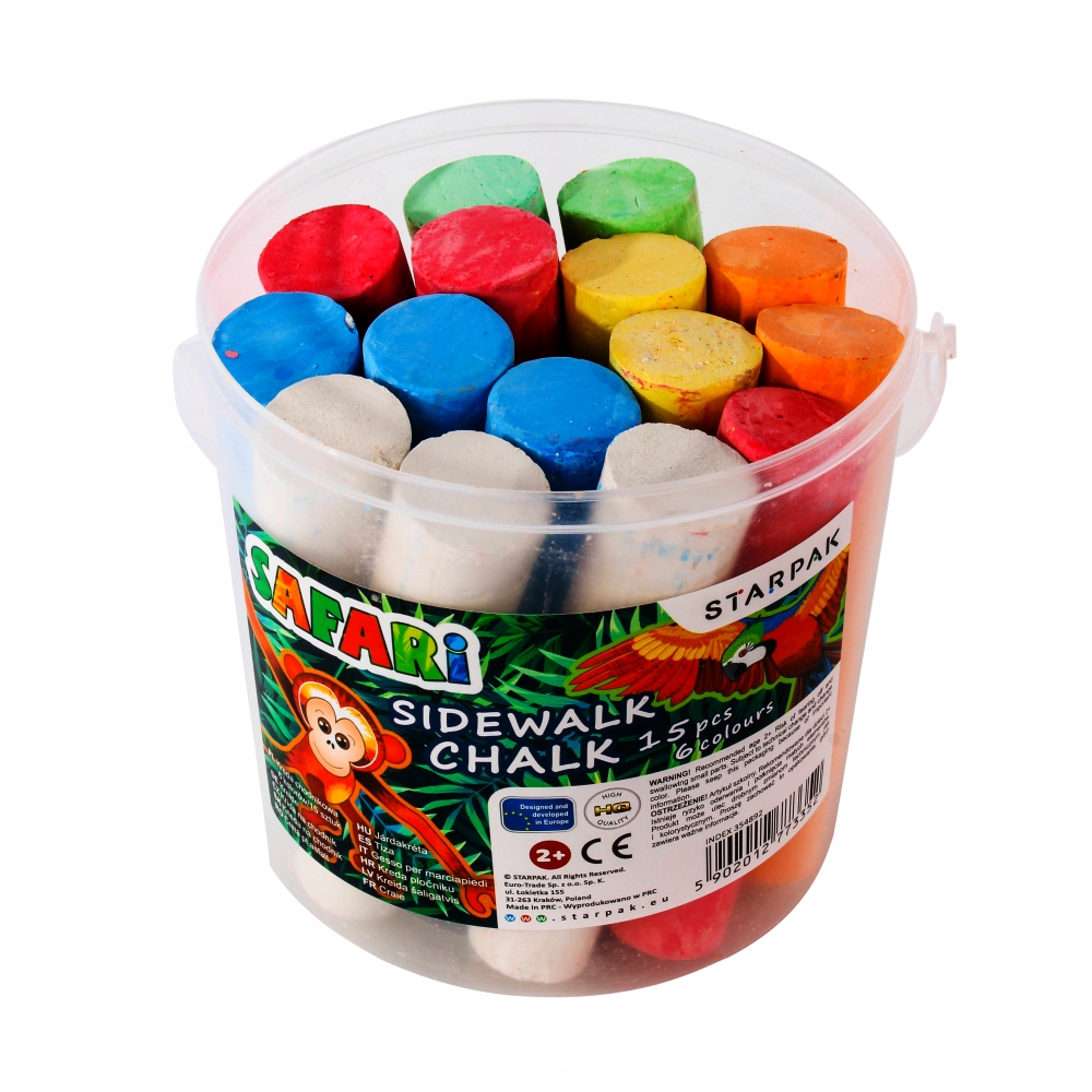 Gruba kreda w 6 kolorach do pisania po chodniku z kolekcji Starpak z licencją Safari. Kreda zapewnia świetną zabawę na świeżym powietrzu oraz pozwala rozwijać umiejętności plastyczne od najmłodszych lat.