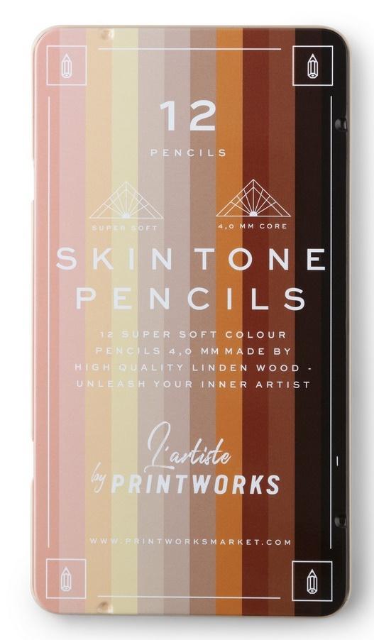 Zestaw 12 starannie dobranych kredek w odcieniach skóry i estetycznym metalowym opakowaniu. Zaprojektowane i wyprodukowane przez PRINTWORKS. Dla wszystkich entuzjastów kolorowania i artystów wykonujących własne prace. Dzięki ich miękkim, bardzo grubym rdzeniom stworzysz doskonałe rysunki. Wydłużona żywotność kredek. Wszystko, czego potrzebujesz, aby zacząć tworzyć! PRINTWORKS to szwedzka , której ambicją jest tworzenie funkcjonalnych produktów codziennego użytku w nowym estetycznym wydaniu. Produkty PRINTWORKS to indywidualizm, jakość i najwyższej klasy wzornictwo. Przemyślany dobór kolorów, materiałów i typografii sprawia, że produkty PRINTWORKS to klasyka naszych czasów.