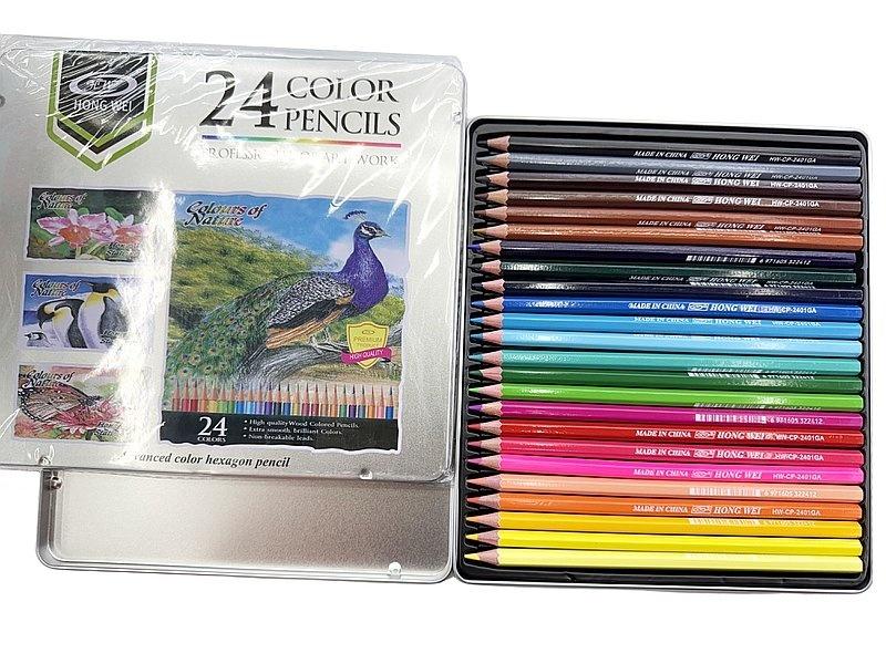 Zestaw 24 kredek, metalowe pudełko, 21x18,5x1,5cm
