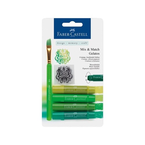 • kremowe, pigmentowe kredki w soczystych barwach • doskonale widoczne na ciemnych oraz fakturowanych powierzchniach oraz płótnie • gotowe zestawy kolorystyczne zapewniają przyjemność i wolność tworzenia • doskonałe do projektów w każdym stylu • odcienie zielone • 4 kolory + pędzelek + stempelek