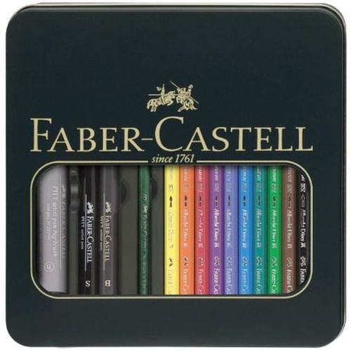Zestaw zawiera 10 kredek Albrecht Durer, 2 flamastry artystyczne Pitt Artist Pen, flamaster Big Brush oraz pędzel do rozmywania kredek.