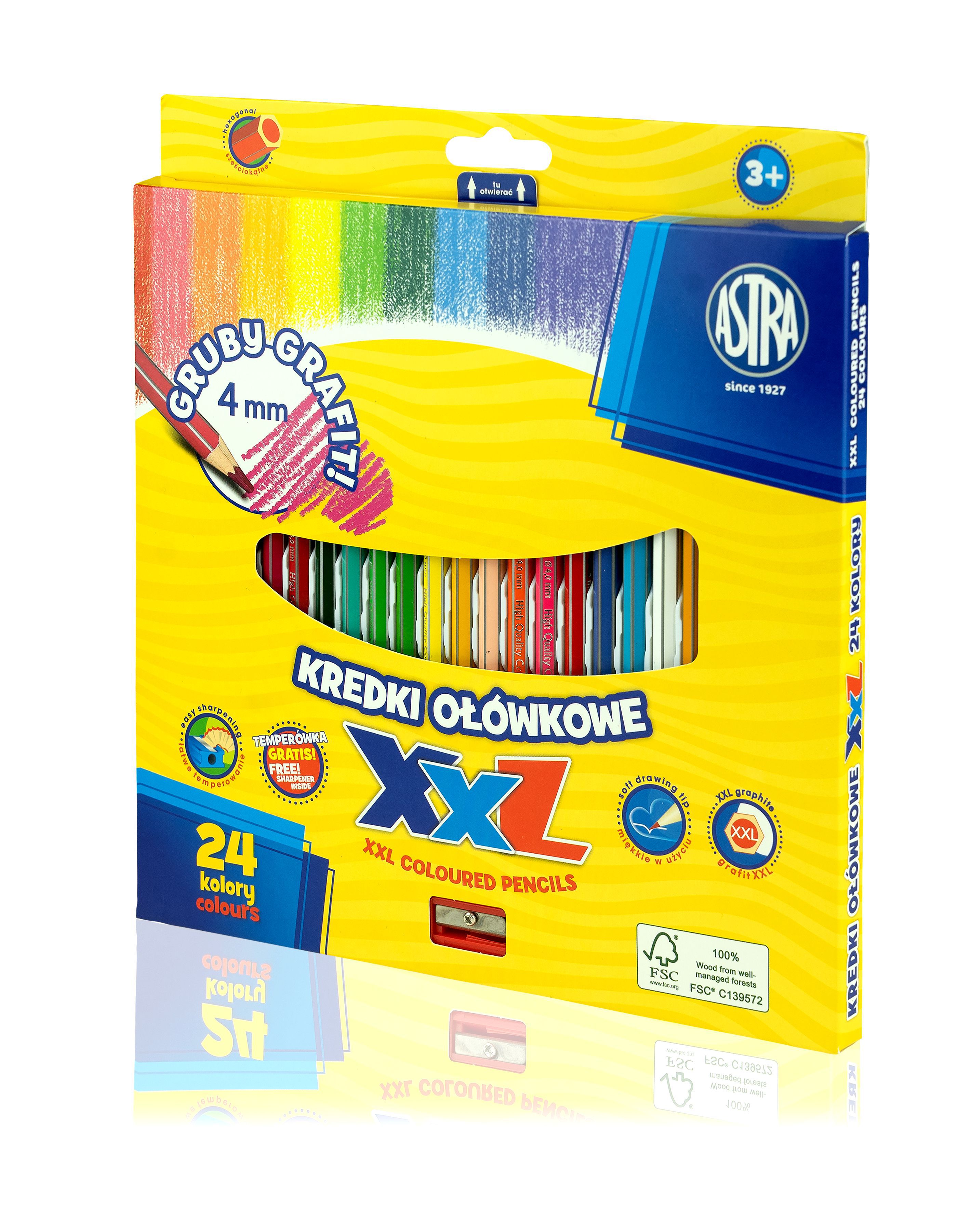 Opakowanie Kredki Astra ołówkowe heksagonalne 24 kolory grafit 4mm