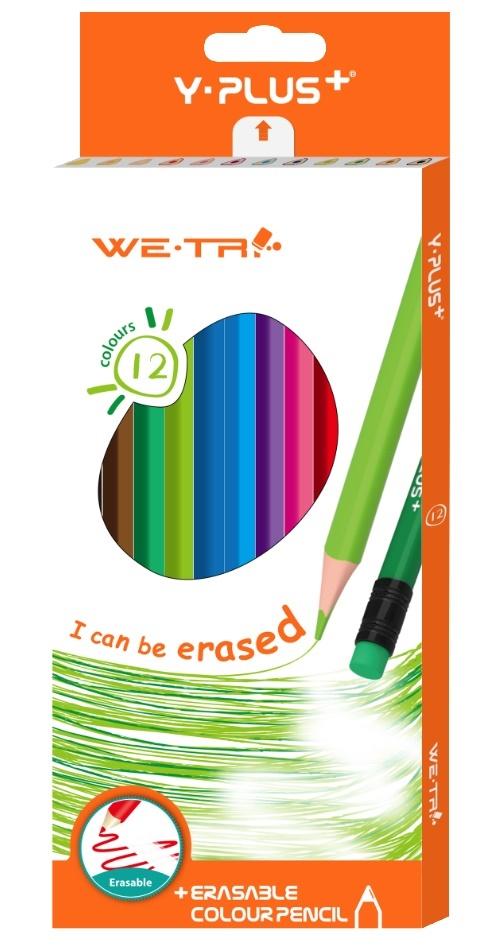 Kredki bezdrzewne ścieralne z gumką 12 kolorów