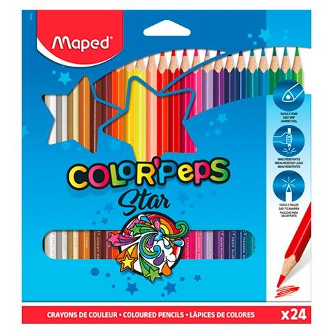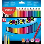 Kredki COLORPEPS 24 szt wykonane z drewna lipowego, trójkątny przekrój, intensywne kolory, grafit o przekroju 2,9 mm. Pakowane w kartonowe etui. JS 1 etui.