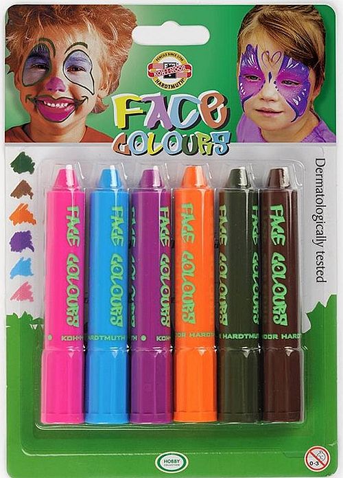 Kredki w formie pomadki do malowania twarzy. Testowane dermatologicznie, nie wywołują podrażnień i nie uczulają. Można je łatwo nanosić oraz zmywać za pomocą wody z mydłem. Doskonale nadają się do malowania twarzy na imprezy sportowe, karnawałowe, dziecięce spotkania, zabawy itp.
